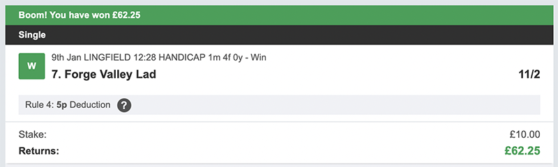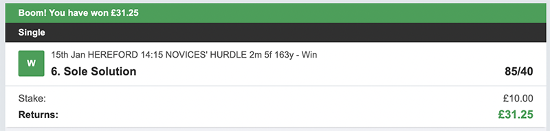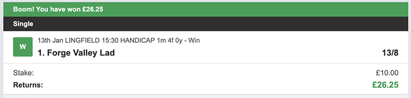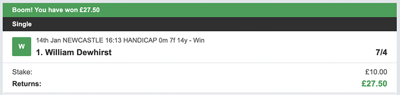 2 Winners @ £47.50 & £31.25