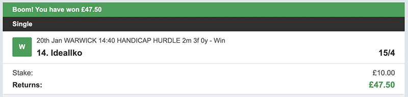 Cheltenham Day 3 Profit/Loss: +£224.80